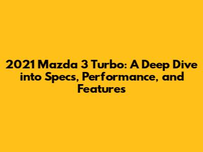 Hey car enthusiasts! Ever wondered what makes the 2021 Mazda 3 Turbo so special? Well, you're in for a treat! We're diving deep into the engine specs, performance figures, and all the juicy details that make this car a real head-turner. Get ready to explore the power, the features, and everything else you need to know about the Mazda 3 Turbo. Let's get started!