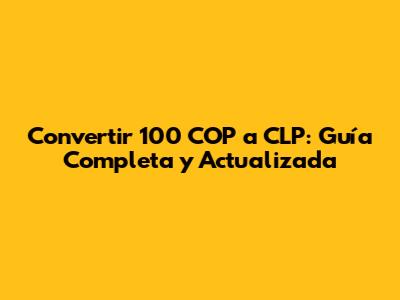 Convertir 100 COP A CLP: Guía Completa Y Actualizada