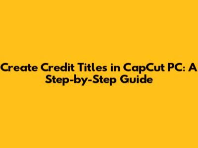 Create Credit Titles In CapCut PC: A Step-by-Step Guide