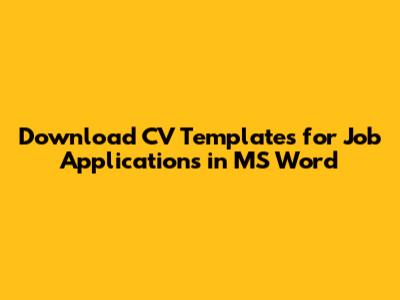 Download CV Templates For Job Applications In MS Word
