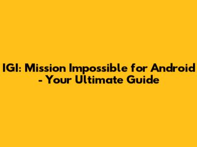 IGI: Mission Impossible For Android - Your Ultimate Guide