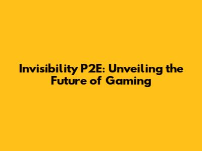 Invisibility P2E: Unveiling The Future Of Gaming