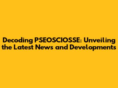 Recent News and Developments in PSEOSCIOSSE: What You Need to Know