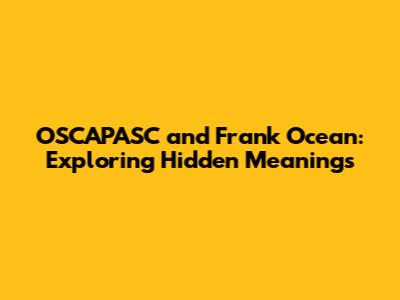 OSCAPASC & Frank Ocean: Unpacking The Wisdom