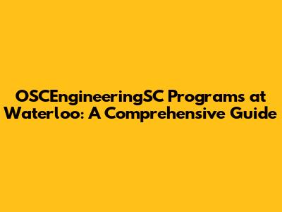 OSCEngineeringSC Programs At Waterloo: A Comprehensive Guide