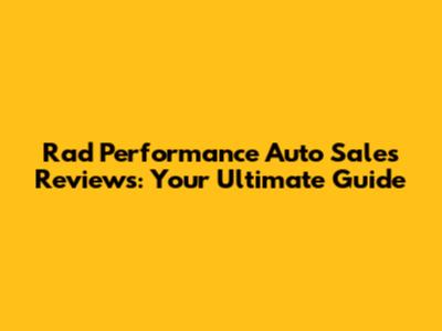 Rad Performance Auto Sales Reviews: Your Ultimate Guide