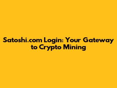 Satoshi.com Login: Your Gateway To Crypto Mining