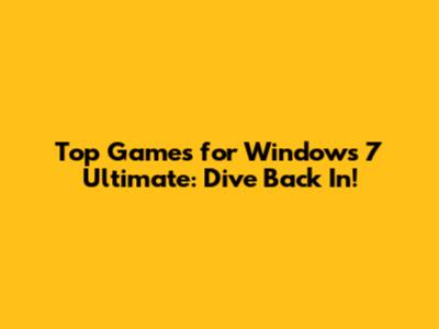 Top Games For Windows 7 Ultimate: Dive Back In!